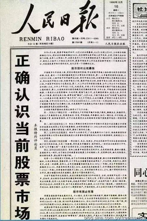 这个文章在现在看来,可以看成其后20多年防范股市风险的纲领性文章,它把1996年股市暴涨的原因总结为五条: