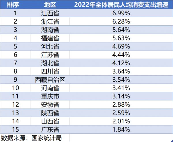 从2022年的各省消费增速数据也可看到,全体居民人均消费支出增速靠前的大多不是印象里的“经济发达地区”,虽然增速的统计会必然会受到基数的影响,但也能在一定程度上说明消费意愿的地区差异——并且,这样的差异,在近几年有可能会进一步拉大。