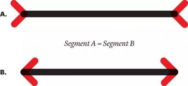 卡尼曼等人以穆勒-莱尔错觉(the Müller-Lyer illusion)为基础做了一个类比。图中有两条两端带箭头的平行线段,一条线的箭头向外指,一条向内指。因为箭头方向不同,下面一条线段看起来比上面的短一些,但事实上长度是相等的。关键之处在于:即使我们拿尺子量,发现两条线段一样长,并且学习了一番错觉的神经生物学机制以后,我们依然感觉一条线段比另一条短一些。