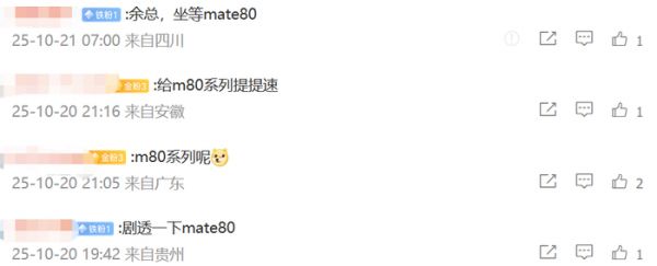 图源:微博自从余承东发布了招聘信息以后,不少网友都在猜,华为能挖到多少大神?有人说,钱管够,啥神都能来!也有人希望招来的人才赶紧把 Siri 按在地上打,实现遥遥领先。不过小雷看了一下评论区哈,还有一批专一的粉丝,在等着 Mate80 系列的到来。