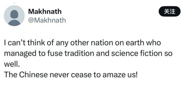 “我想不出世界上还有哪个国家能将传统与科幻融合得这么好。中国人总是让我们惊叹不已!”