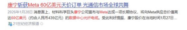 1月底,Meta与康宁签订60亿美元AI数据中心光缆大单,充分说明AI对光纤需求。