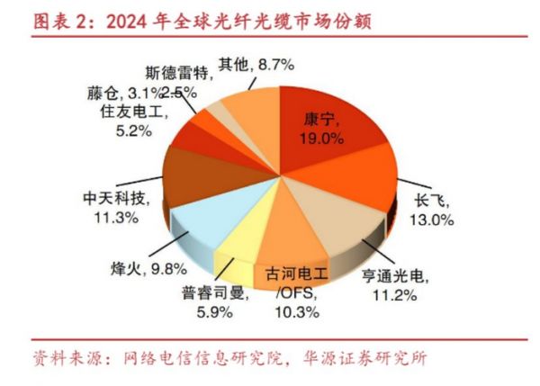 全球光纤市场高度集中,根据网络电信信息研究院统计,2024年全球光纤光缆市场排名前4的厂家,合计市占率超过50%。全球前10大光纤光缆公司市占率超过90%。