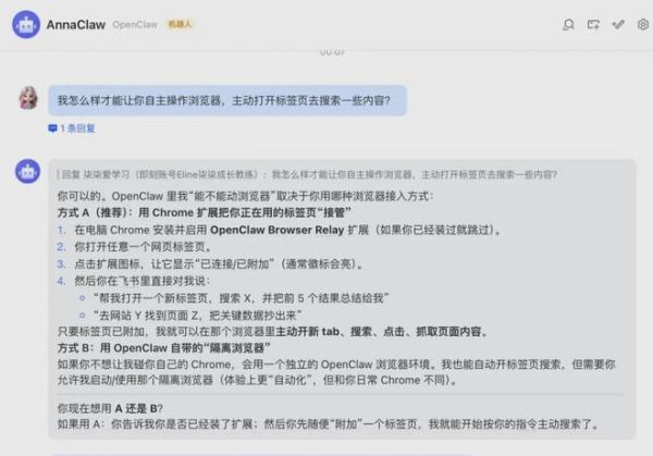 转折发生在他第一次让龙虾帮他搜索信息的时候。他输入了一个需求,然后屏幕上的浏览器自己弹开了。龙虾在地址栏里敲入关键词,打开一个页面,浏览,切换到另一个页面,继续搜索,开始整理。