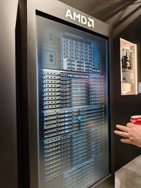 除了华为,AMD此次也掏出了不一样的东西,他们带来了全新的Helios架构,这是一个高度集成的算力核心。它不再是简单地把CPU和GPU插在主板上,而是通过3D封装和模块化设计,将CPU、GPU和DPU(数据处理单元)物理上“熔”为一体。