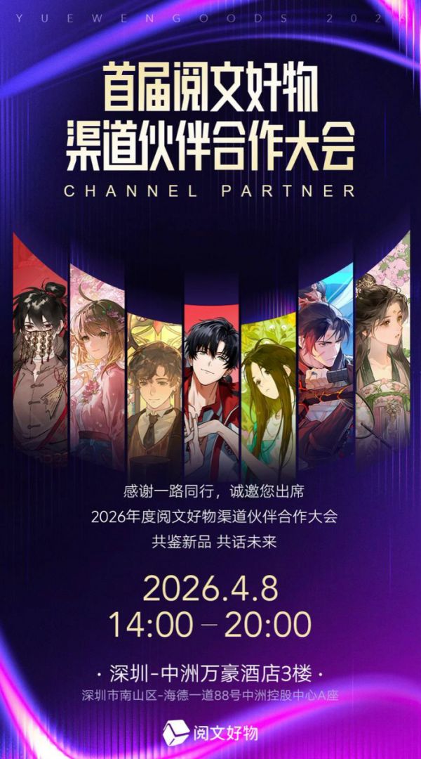 阅文表示,在2026年将有多个头部IP的视觉化产品规划上线。公司将持续打造更多高品质、多元化的产品,进一步丰富产品矩阵。同时,阅文还将深化渠道与运营的创新升级,在线上线下中探索更多交互玩法,给用户带来沉浸式的IP体验,实现从产品消费到文化体验的跨越。4月8日,阅文还将于深圳举办“首届阅文好物渠道伙伴合作大会”,与合作伙伴共享发展红利。