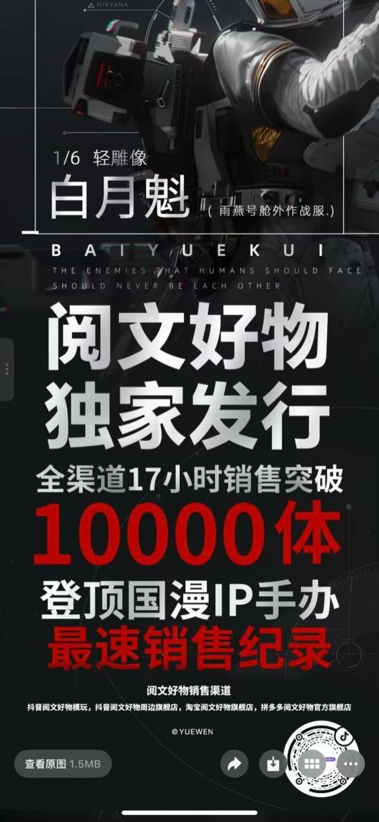 这一业务快速落地,多个合作项目表现亮眼,阅文好物与艺画开天合作的白月魁手办,17小时售出上万体,创下国内非众筹手办的最快销售纪录。此外,2025年八月,《诡秘之主》与《王者荣耀》联动上线,阅文好物同步出品了马口铁徽章、镭射票、亚克力色纸、亚克力立牌、磁吸金属徽章等联动周边,这也是《王者荣耀》新皮肤上线时,同步推出周边品类最多、丰富度最高的一次。