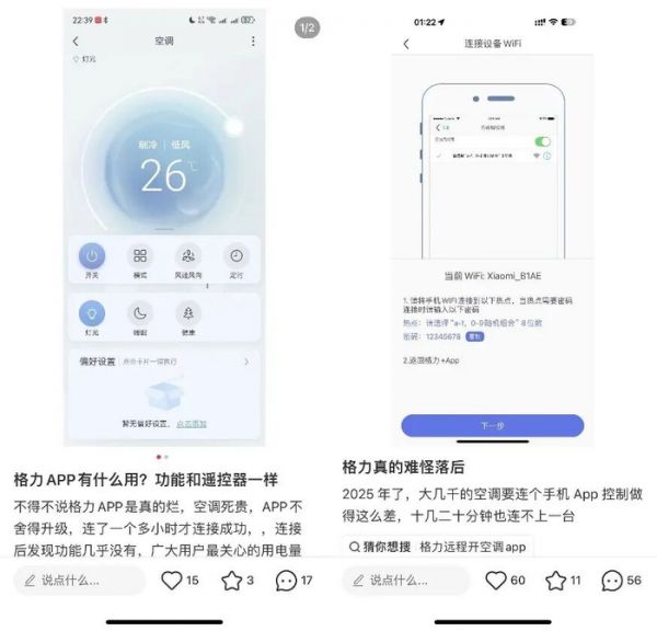 如今用户选购智能家居,“好用”只是门槛,“够智能”才是决胜点,但这恰恰是格力的短板。在社交平台上搜索格力智能家居,不少用户吐槽格力的APP难用,连不上家电;甚至有用户建议格力融入小米生态,或许能带来更多订单。