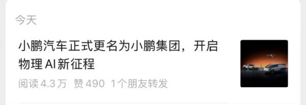 小鹏未在公告中披露更多细节,但在微信推文标题中称“开启物理AI新征程”。