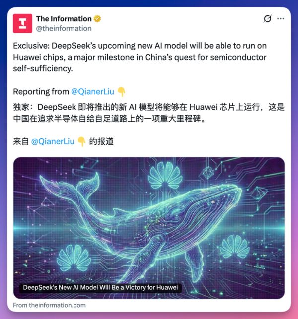 新模型发布前,AI 芯片公司通常能拿到提前访问权。提前做软件适配,这是行业惯例。但这次 DeepSeek 只把窗口给了华为和寒武纪等国产芯片公司。