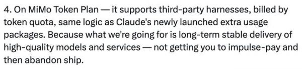 在解读Anthropic举措的同时,罗福莉也阐明了MiMo Token计划的设计逻辑。