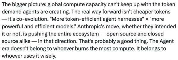 她认为,Anthropic此举并非单纯的商业防御,而是在全球算力供给无法追上Agent需求增速的背景下,整个生态系统走向成熟的一个必要节点。