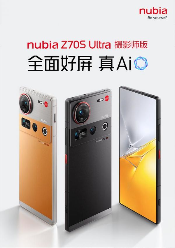 努比亚Z70S Ultra摄影师版手机 / 展示该机型的不同配色及正面屏幕
