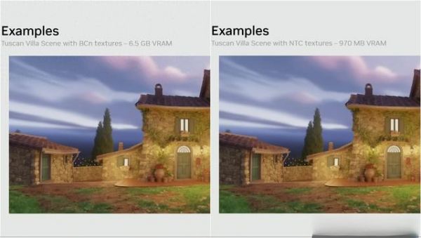 别墅场景对比图 :左右分栏展示BCn与NTC纹理的别墅场景传统压缩走到了物理极限