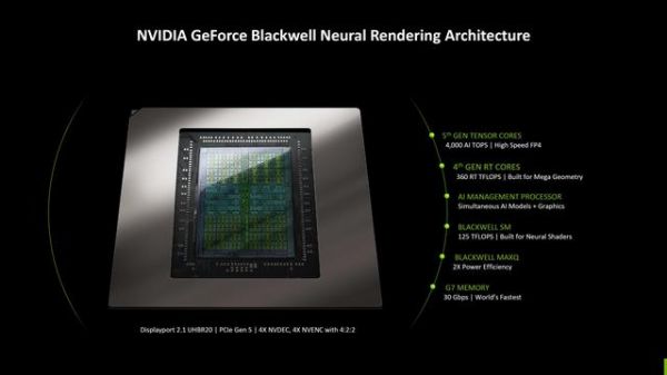 Blackwell架构芯片图 :展示NVIDIA Blackwell神经渲染架构参数最关键的一点是,NTC是确定性重建,不是生成式AI——每次重建出来的纹理完全一致,不会出现随机变化,这就解决了游戏工业对结果可预测性的核心要求,不会出现同一场景每次进游戏画面都不一样的离谱情况。