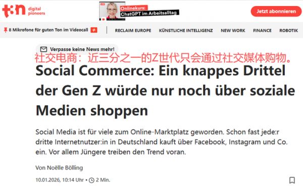 Z世代只通过社媒购物 图源:t3n.de