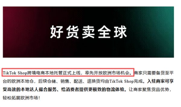 欧洲站率先开放本地托管 图源:TikTok Shop跨境电商
