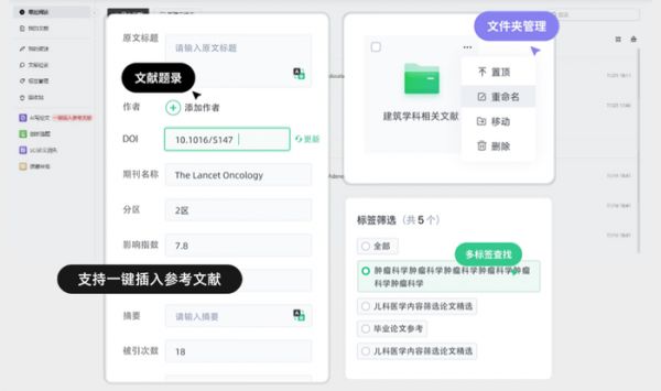 将文献导入小绿鲸后,会自动呈现文献的题录信息。你可以无限创建文件夹给文献分类,可以给文献打标签、标记重要度,通过标签筛选和文献题目搜索能够快速找到想要的文献。