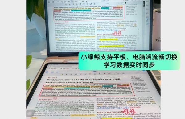 值得一提的是,小绿鲸支持平板、电脑端流畅切换,学习数据实时同步,助你随时随地阅读文献!