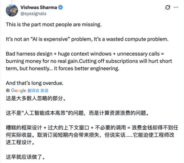 快把烧token变成某种爱好和社交展示资本的人们吐槽吐槽Anthropic 就罢了,对于各类Harness产品以及模型厂商们来说,这事真正的信号意义其实很强,如果还是想着趁乱靠免费量大管饱去接住一波流量用户,就太不合时宜了。