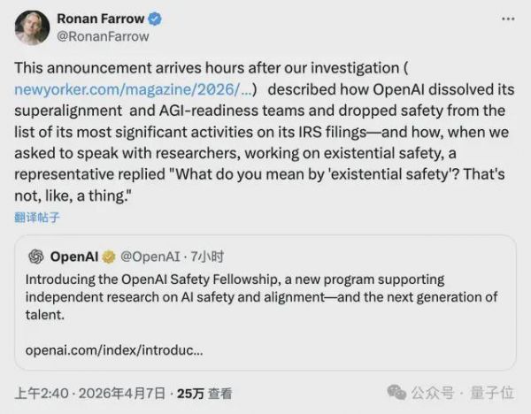 就在刚刚,曝光此备忘录的《纽约客》记者在x上表示,当他们想采访“研究AI生存风险”的研究员时,OpenAI官方回应是: