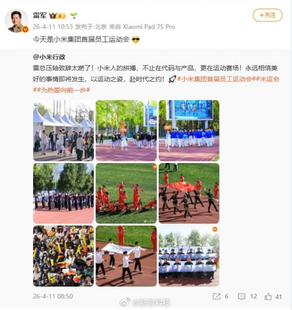 【#雷军官宣小米首届员工运动会#】@雷军 转发@小米行政 微博并称:今天是小米集团首届员工运动会 [酷]
