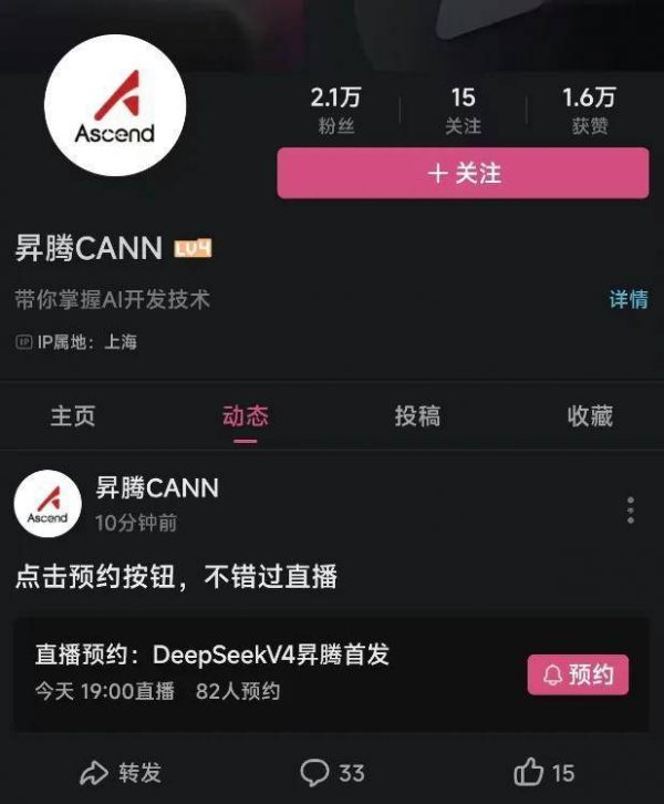 我们发现,昇腾 CANN 将在今晚 7 点直播 DeepSeek V4在昇腾平台的首发