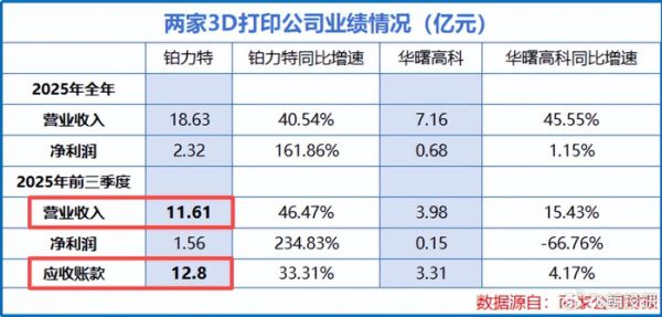 同样面对航空航天客户回款慢的行业共性问题,华曙高科2025年前三季度应收账款占营收比例约83.2%,虽也面临回款压力,但低于铂力特的110.2%。