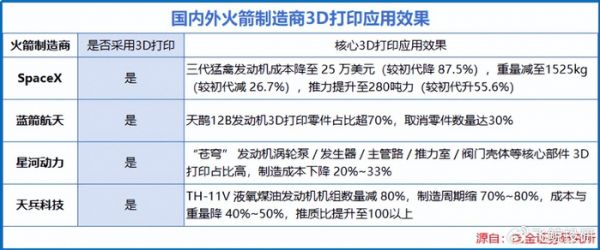 例如,星河动力的“苍穹”发动机,其涡轮泵、发生器等核心部件大多采用3D打印,制造成本成功下降20%-33%。