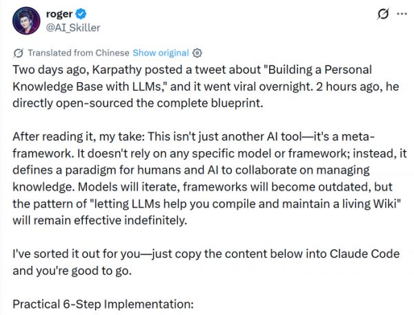 Karpathy知识库「LLM Wiki」火爆了,全网围观讨论