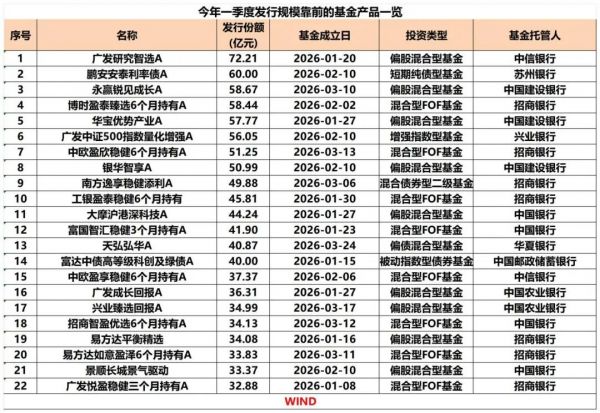 今年一季度,共有115只产品提前结募,其中,被动指数型基金达40只,主动权益类基金(含普通股票型、偏股混合型)近30只,FOF产品达23只。